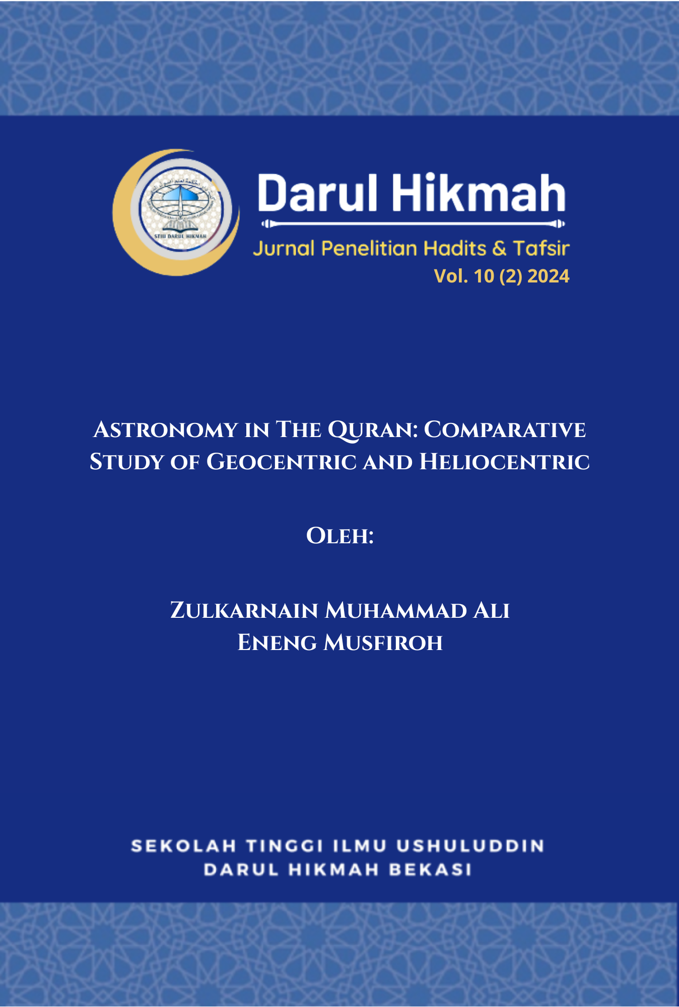 The study of the Qur'an has evolved significantly from the time of the Prophet Muhammad ﷺ to the present, reflecting its timeless relevance and emphasis on knowledge, including astronomy. The Qur'an contains numerous verses referencing celestial phenomena, encouraging reflection on the cosmos as a sign of Allah’s greatness and wisdom. This research explores Islamic perspectives on geocentrism and heliocentrism by analyzing Qur'anic verses related to astronomy. It investigates whether the Qur'an implies an Earth-centered universe (geocentrism) or aligns with the heliocentric model, which places the sun at the center. The study uses philosophical, scientific (`ilmy), and literary (adabi) approaches to examine the interpretations of scholars such as Fakhruddin Al-Razi, Musthafa Al-Maraghi, and others. Findings show a diversity of scholarly opinions, shaped by the scientific knowledge available during their respective eras. Some verses appear to support a geocentric view, while others resonate with heliocentric ideas. This variation underscores how Qur'anic interpretation evolves alongside scientific advancement, reflecting the dynamic interplay between revelation and reason in Islamic thought. The study emphasizes the Qur'an’s role in encouraging inquiry and its continued relevance in bridging religious teachings with modern science. It highlights the need for ongoing scholarly engagement to deepen understanding of both the Qur'an and the natural world.