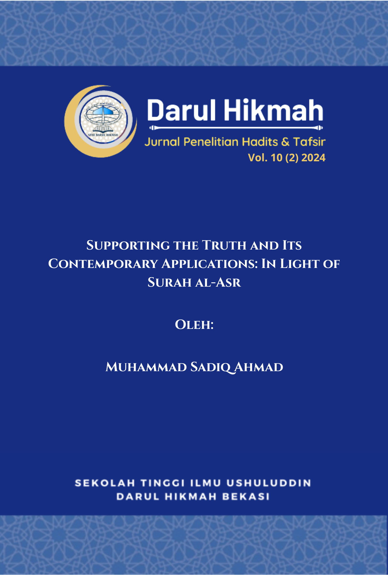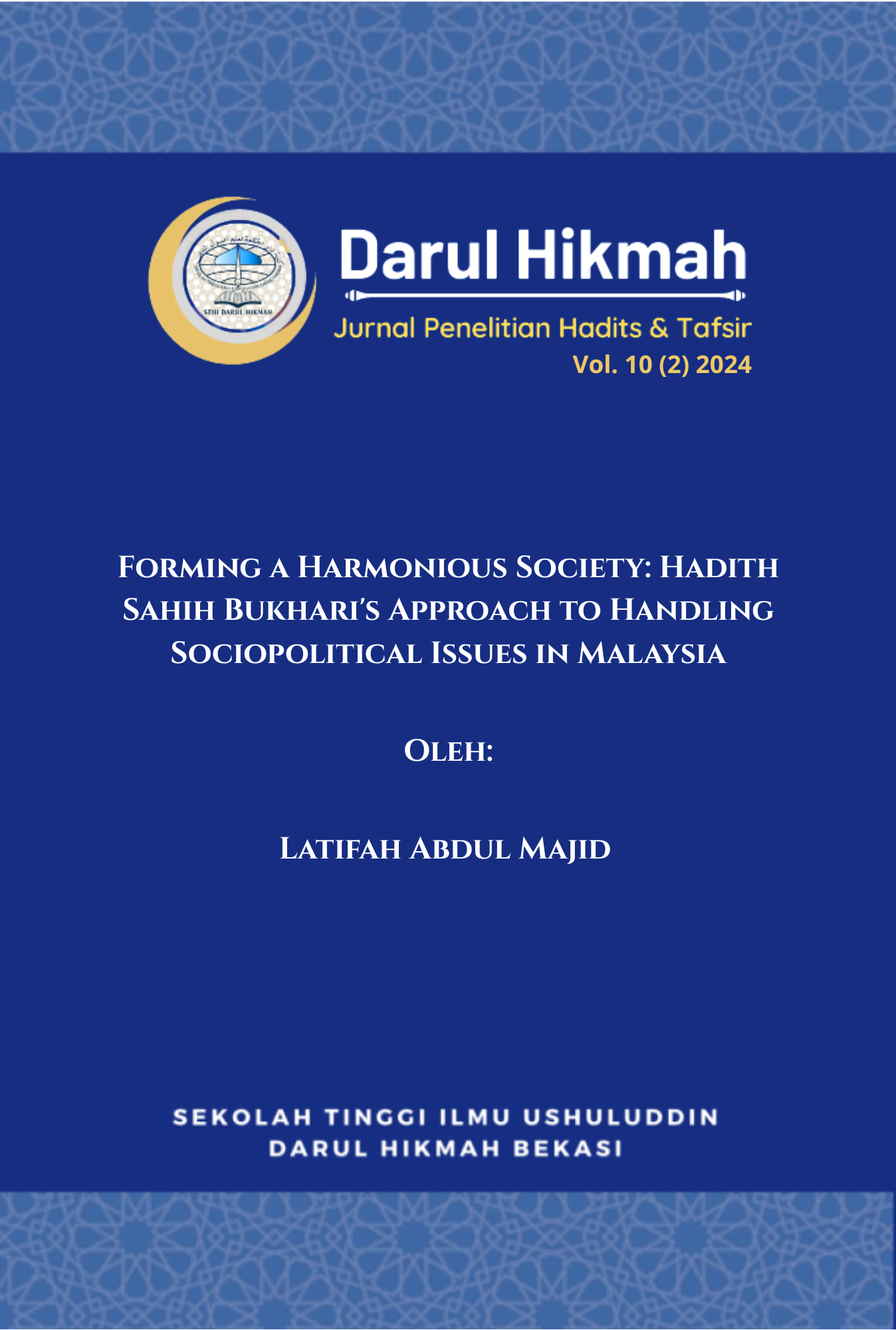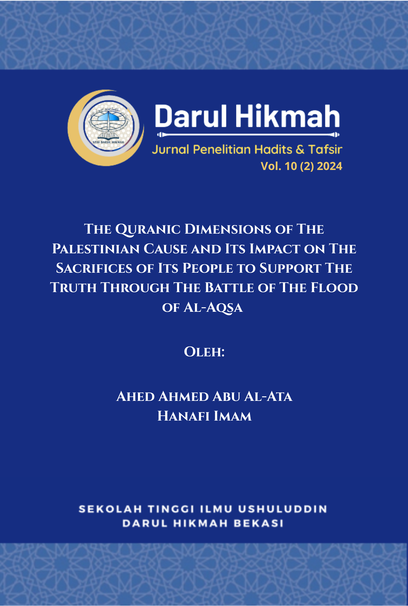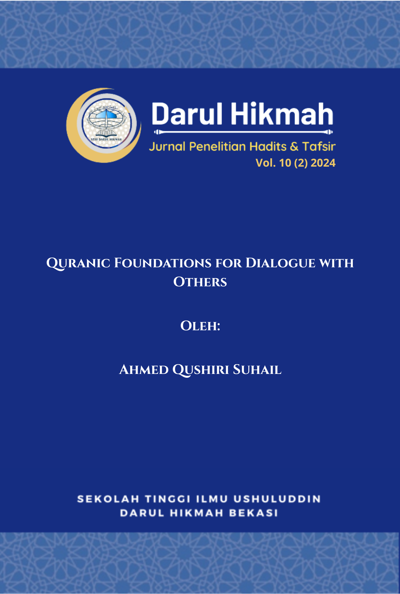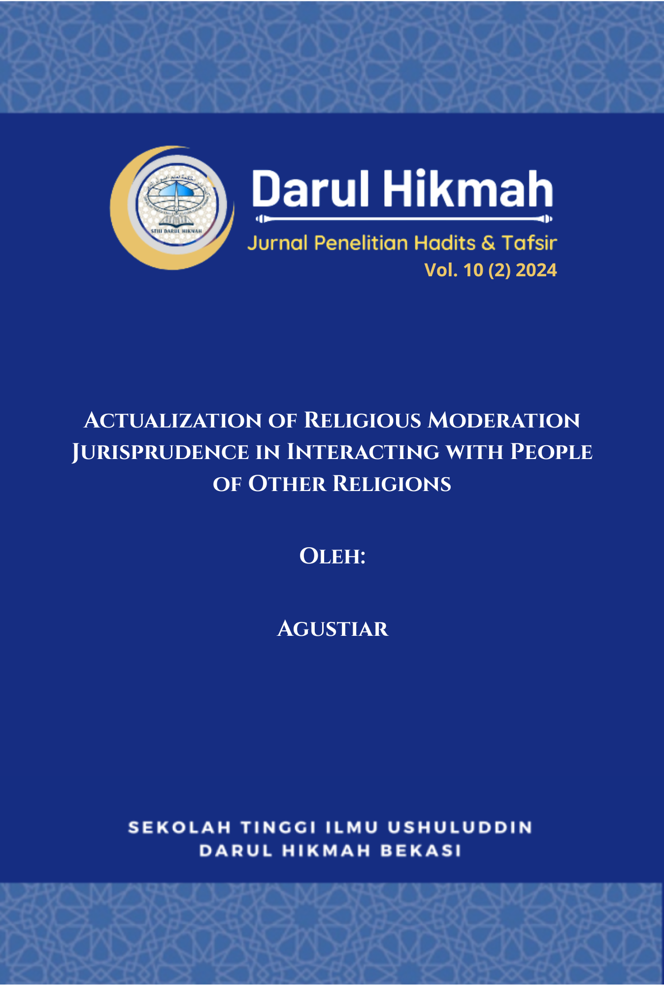 Edisi Vol. 10 No. 2 Tahun 2024 Darul Hikmah: Jurnal Penelitian Hadits dan Tafsir memuat sembilan artikel yang membahas moderasi beragama, dialog antarumat, serta relevansi tafsir dan hadis terhadap isu sosial-keagamaan kontemporer. Edisi ini istimewa karena turut menghadirkan kontribusi penulis dari Gaza dan Arab Saudi, menegaskan jangkauan internasional jurnal ini dalam memperkuat kolaborasi ilmiah dan memperkaya khazanah studi Al-Qur’an dan hadis di kancah global.